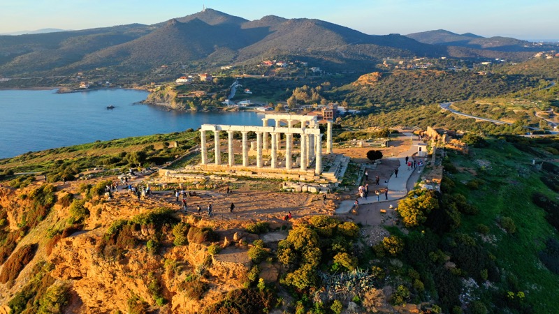 Arriving in Sounio is not difficult to see the magnificent temple of Poseidon, who built in 444 BC from marble, on a 60-meter-high cliff above the sea. At the base of a column of the temple is engraved the name of the English poet, Lord Byron, who was a Philhellene. On a lower hill, next to it, is the temple of Athena. Sounio was fortified during the Peloponnesian War.